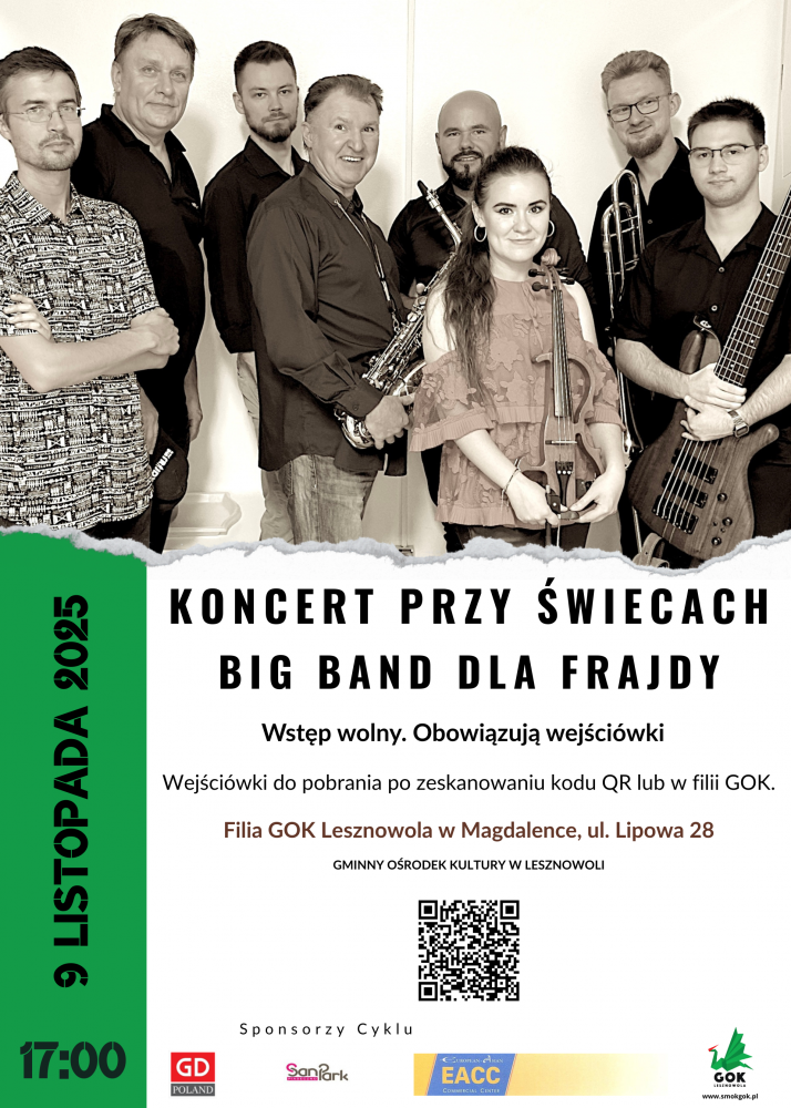 Wstęp wolny. Obowiązują wejściówki. Wejściówki do pobrania po zeskanowaniu kodu QR lub w filii GOK.