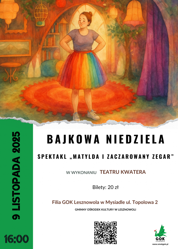"Matylda i zaczarowany zegar" to pełna magii opowieść o dziewczynce, która pewnego dnia dostaje niezwykły prezent – stary budzik, skrywający czarodziejski sekret. Gdy wybija północ, w jej pokoju pojawiają się tajemnicze postaci: Kapelusznik, Królowa Kier i jej żołnierz Pik. Matylda wyrusza w niezwykłą podróż przez świat wyobraźni, by odkryć, czym naprawdę jest odwaga, przyjaźń i moc dobrych wyborów. Spektakl łączy elementy baśni, humoru i interakcji z dziećmi, tworząc niezapomniane teatralne przeżycie.